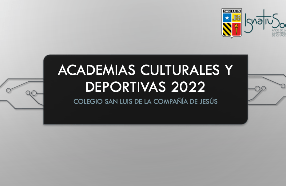 LES PRESENTAMOS EL CATÁLOGO DE ACADEMIAS DEPORTIVAS Y CULTURALES. ESTE AÑO HEMOS QUERIDO RETOMAR GRAN PARTE DE NUESTRAS ACADEMIAS. ES POR ELLO QUE TE INVITAMOS A “ELEGIR” …EN EL SAN… Leer más »INFORMACIÓN ACADEMIAS CULTURALES Y DEPORTIVAS